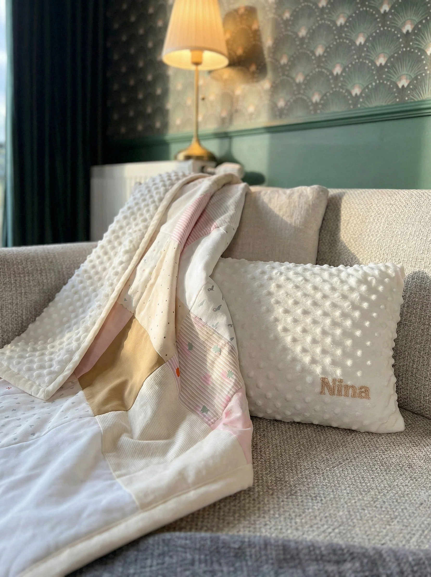 Nous transformons vos vêtements sentimentaux en couvertures uniques, réalisées à la main, pensées pour durer.